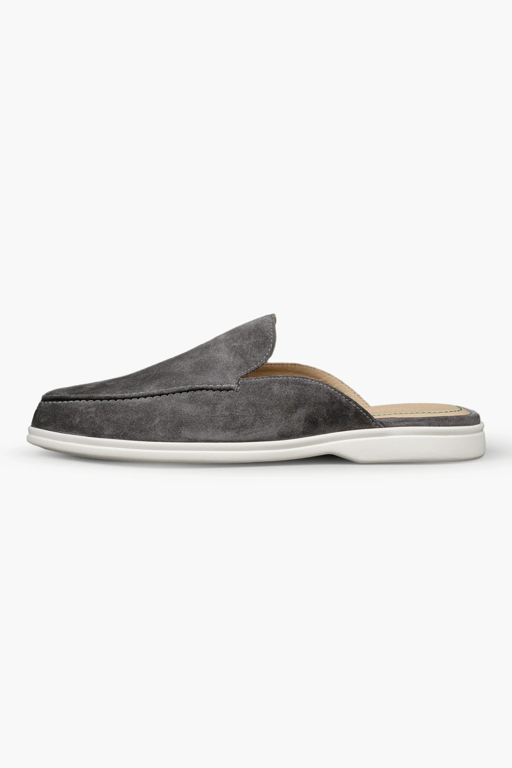 These mules are crafted from soft Italian Suede. Their minimalist silhouette, comfortable fit, and lightweight white outsole create a versatile pair perfectly embodying the aesthetic of Quiet Luxury.